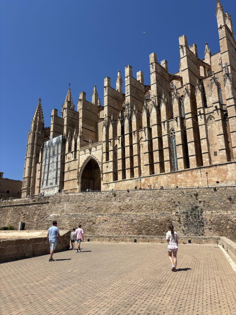 1 dag zijn we naar Palma gereden, de hoofdstad van Mallorca. Hier hebben we o.a. de kathedraal bezocht. Alleen de trip er naar toe was al fantastisch. Langs het water, de haven, er lag een cruiseschip, de vele palmbomen, het leek bijna Miami wel. Het parkeren vond ik wel spannend, we stonden uiteindelijk in een parkeergarage die nog een paar hele krappe plekjes over had. En EJ vergat de handrem erop te zetten, dus we hadden ook nog bijna schade, maar gelukkig kon ik op tijd roepen. Later konden we er gelukkig om lachen. We besloten de kathedraal van binnen te bezoeken. Hier moest je online tickets voor kopen. Ik had namelijk gelezen dat het uitzicht vanaf boven fantastisch moest zijn, maar daar had je dan blijkbaar weer nog duurdere tickets voor moeten kopen. Dat viel al met al een beetje tegen dus. Ik denk dat we zo’n € 56,00 kwijt waren voor ons vijven (2 volwassenen en 3 kinderen van 17, 14 en 9 jaar). Verder hebben we lekker door de stad geslenterd. Overal waar je keek was wel wat te zien. En aan de ene kant was het niet eens zo bijzonder, aan de andere kant, de kinderen hebben het er nu nog over. Zo leuk vonden ze het. Dus wel een aanrader, een tripje naar Palma. Wij hadden die tip ook van meerdere, andere mensen gehad.