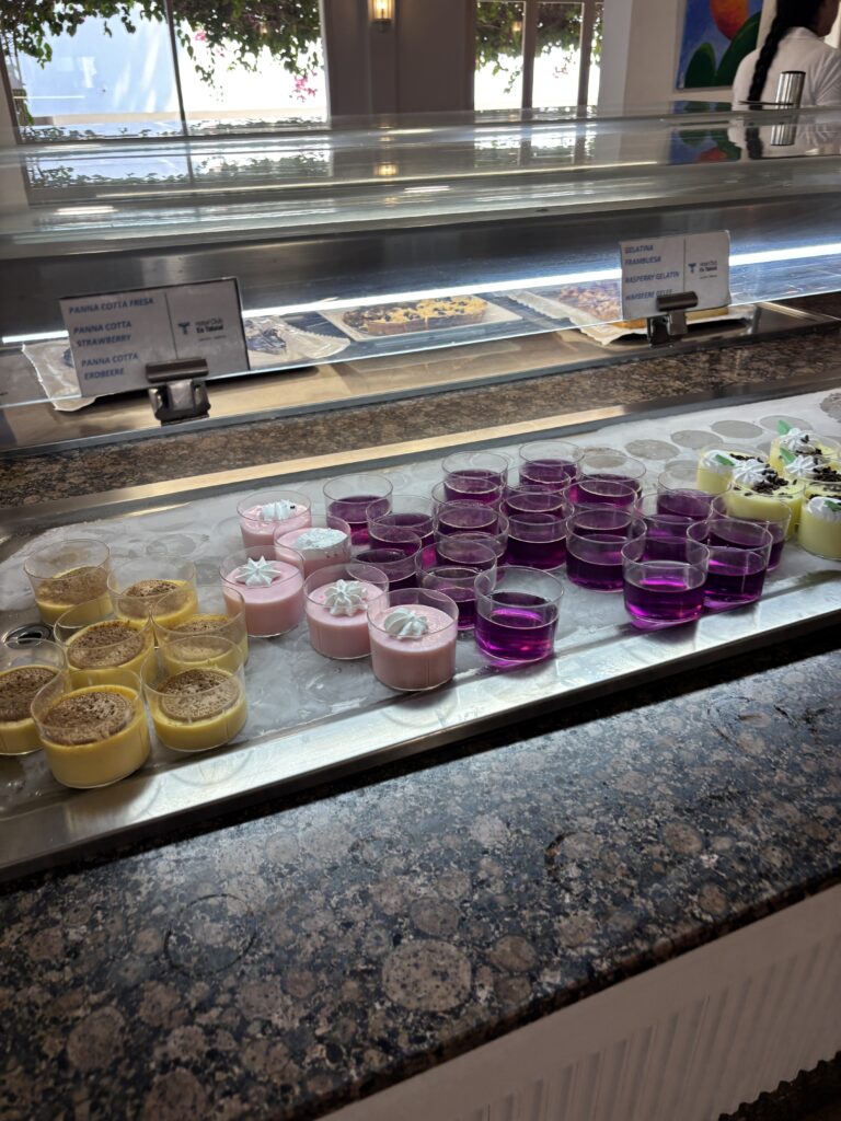 Je kunt gebruik maken van de handdoeken service van het hotel. Je betaalt hiervoor een borg van € 10 per handdoek. Eens in de paar dagen mag je ze omruilen voor nieuwe. Wij vinden dat top! Want wij redden met z’n vijfen precies 3 koffers van 20 kilo, maar de badlakens passen er dan niet meer bij. Ook betaal je voor de drinkbekers € 1 borg per beker. Dit is cash only! Pinnen kan eventueel bij een pinautomaat bij de receptie, bijkomende transactiekosten waren voor ons € 2,90 (misschien verschilt dat per bank?). Je kunt natuurlijk ook zelf een beker meenemen. Wij vulden bijvoorbeeld ook drinkflessen met water voor een dagje weg of om mee te nemen naar het strand, ideaal. Koffie is alleen bij het ontbijt in het restaurant. Bij de lunch en het diner dekken ze de koffieautomaten af. Iets wat wij koffieliefhebbers echt niet zo goed begrepen. Wij haalden dan koffie bij de poolbar, maar dit is niet heel handig. En eigenlijk verwachten ze dan ook dat je koffie drinkt uit een plastic beker. Voordat we gingen las ik in de Facebook groep over het hotel dat andere gasten klaagden over dat het zwembad soms een paar keer per week uren dicht ging vanwege poep in het zwembad. Dat was bij ons inderdaad in 10 dagen ook 2x het geval. 1x ging het bad helemaal niet meer open, dat was al wat later op de middag en 1x was het vrij snel opgelost. Maar dat zou toch beter moeten kunnen zou je denken. Sommige vakantiegangers maakten hier heel veel stampij over bij de directie.