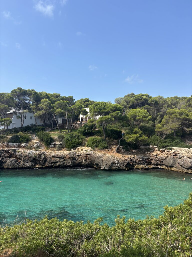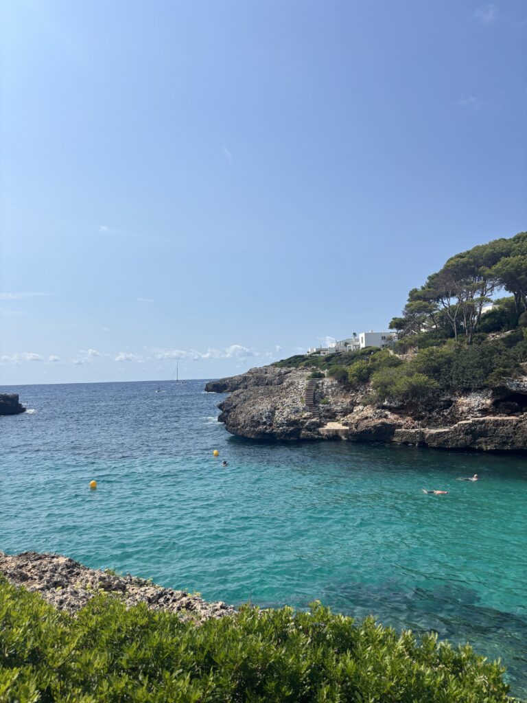 Aan de overkant van de weg, op nog geen 5 minuten loopafstand, heb je meteen Cala des Pou. Een klein baaitje met o.a. strandbedjes. Je betaald hiervoor € 16,94 voor 2 bedjes + parasol of € 9,05 voor 1 bedje. Wat een gekke bedragen he? En daar loopt ook de befaamde famous Cala d’Or fruit man rond, the legend. Als je geen idee hebt waar ik het over heb, Google dan even en je ziet hem vanzelf. Wij hebben er erg om gelachen. Kortom een prima baaitje vlakbij waar je heerlijk kunt zonnen en zwemmen.